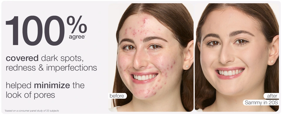 - Instantly covers imperfections like redness, age spots, discoloration & blemishes.
