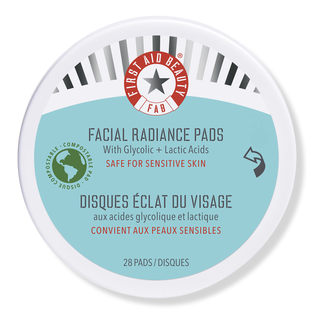 First Aid Beauty's Facial Radiance Pads with Glycolic + Lactic Acids are a gentle, daily exfoliator for face to help brighten + smooth texture.