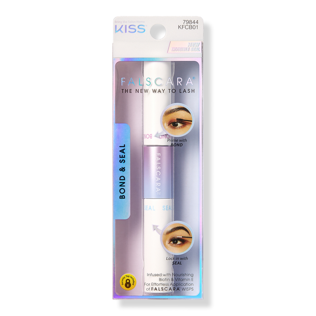 If you can mascara, you can Falscara! KISS Falscara Bond & Seal dual sided tube primes & preps lashes and locks Wisps in place for all day wear.