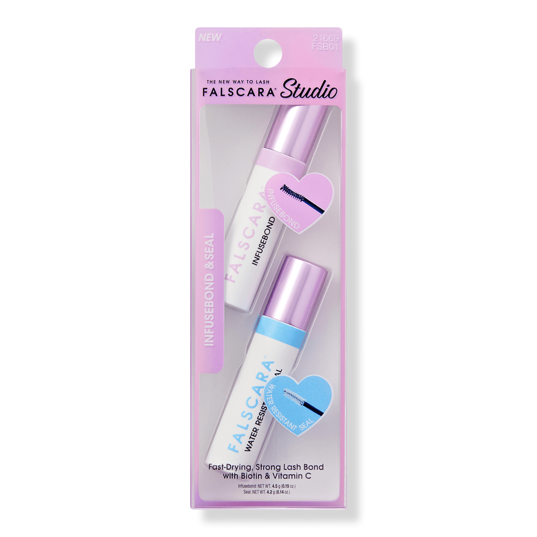 Bond your lashes, then seal the deal with Kiss Falscara Studio InfuseBond & Water-Resistant Seal. InfuseBond’s nourishing formula protects and strengthens your natural lashes. Water-Resistant Seal removes stickiness and seal wisps for longer wear and retention.