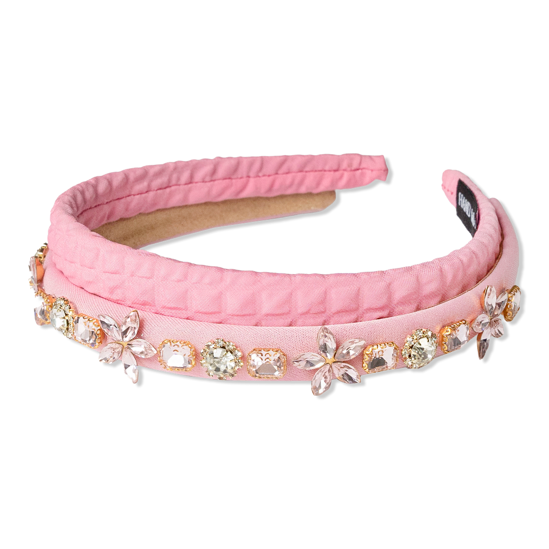 The Fancy & Fun Headband by Locks & Mane is a two-piece set, with one piece crafted from textured fabric and the other adorned with gems and rhinestones.