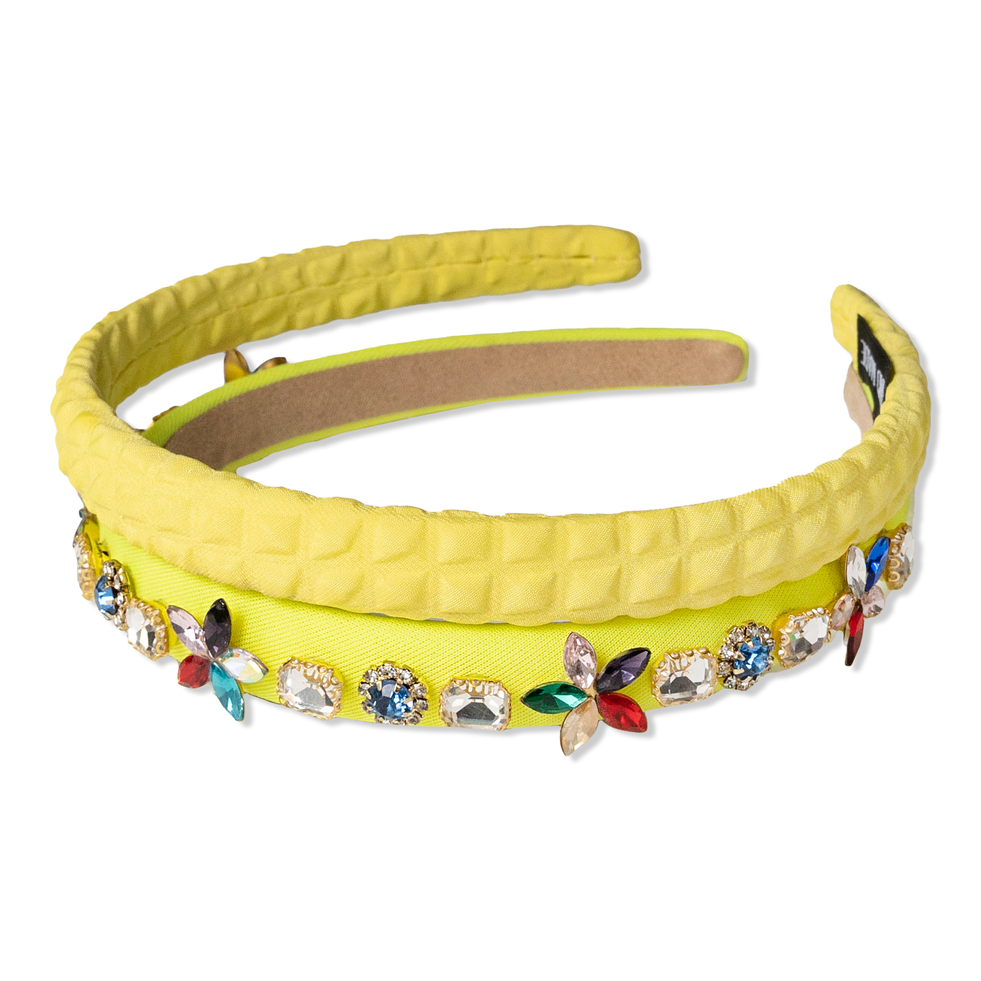 The Fancy & Fun Headband by Locks & Mane is a two-piece set, with one piece crafted from textured fabric and the other adorned with gems and rhinestones.