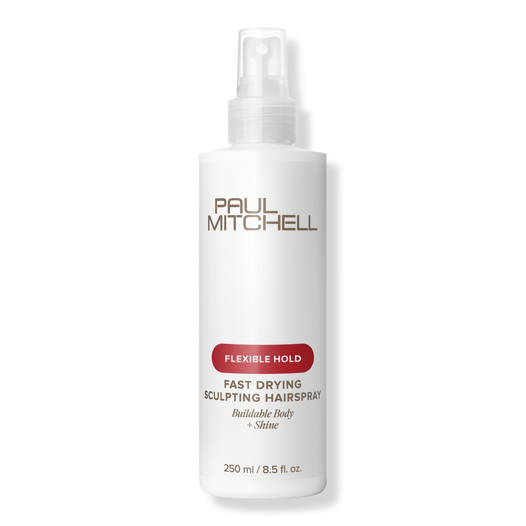 Add body, flexible control and shine to any finished hairstyle with Paul Mitchell Fast Drying Sculpting Hairspray.