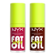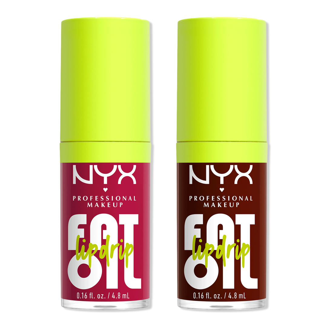 Get 12 hours of hydration with the vegan Fat Oil Lip Drip Lip Oil Duo Kit from NYX Professional Makeup - featuring 2 iconic shades, one for you and one for your bestie!