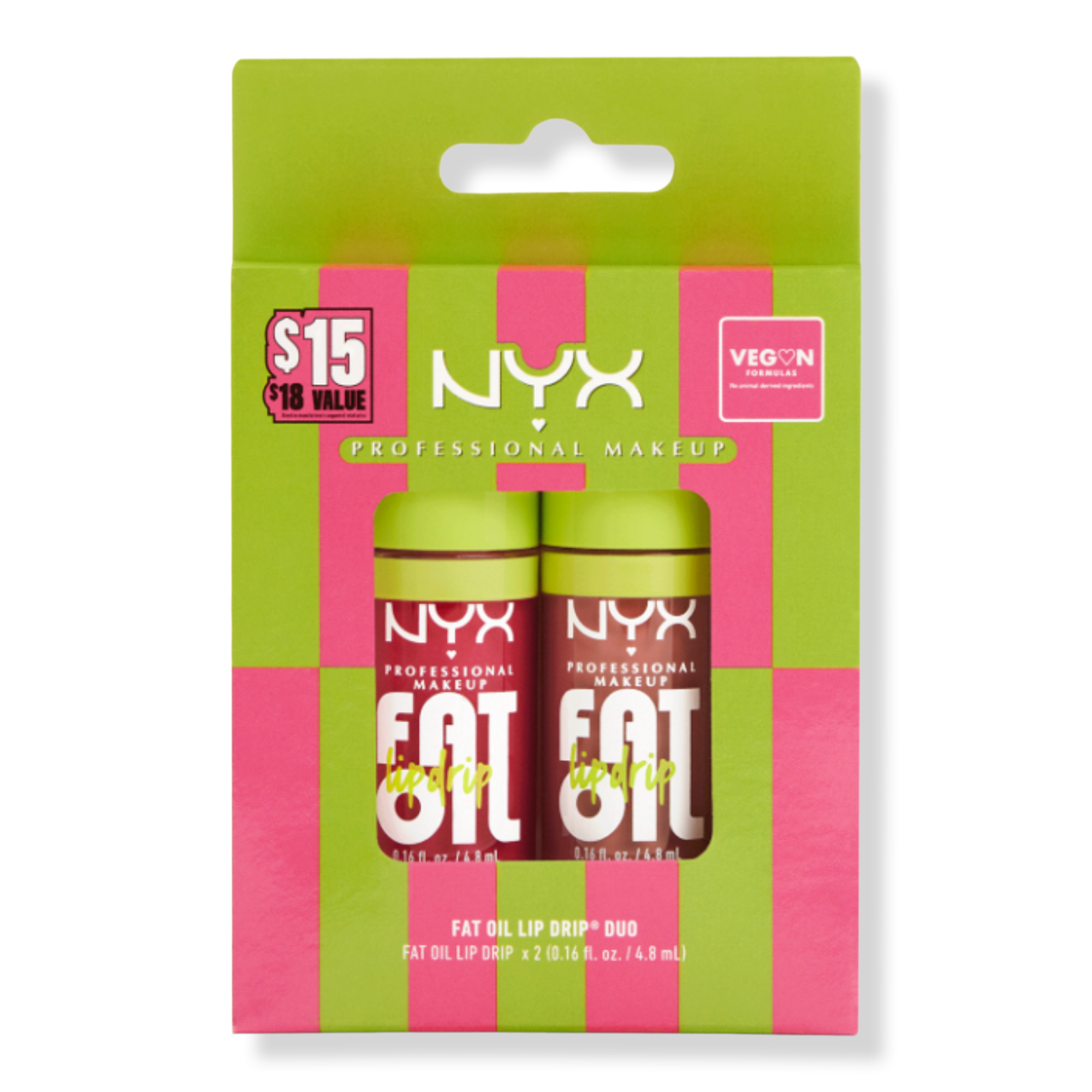 Get 12 hours of hydration with the vegan Fat Oil Lip Drip Lip Oil Duo Kit from NYX Professional Makeup - featuring 2 iconic shades, one for you and one for your bestie!