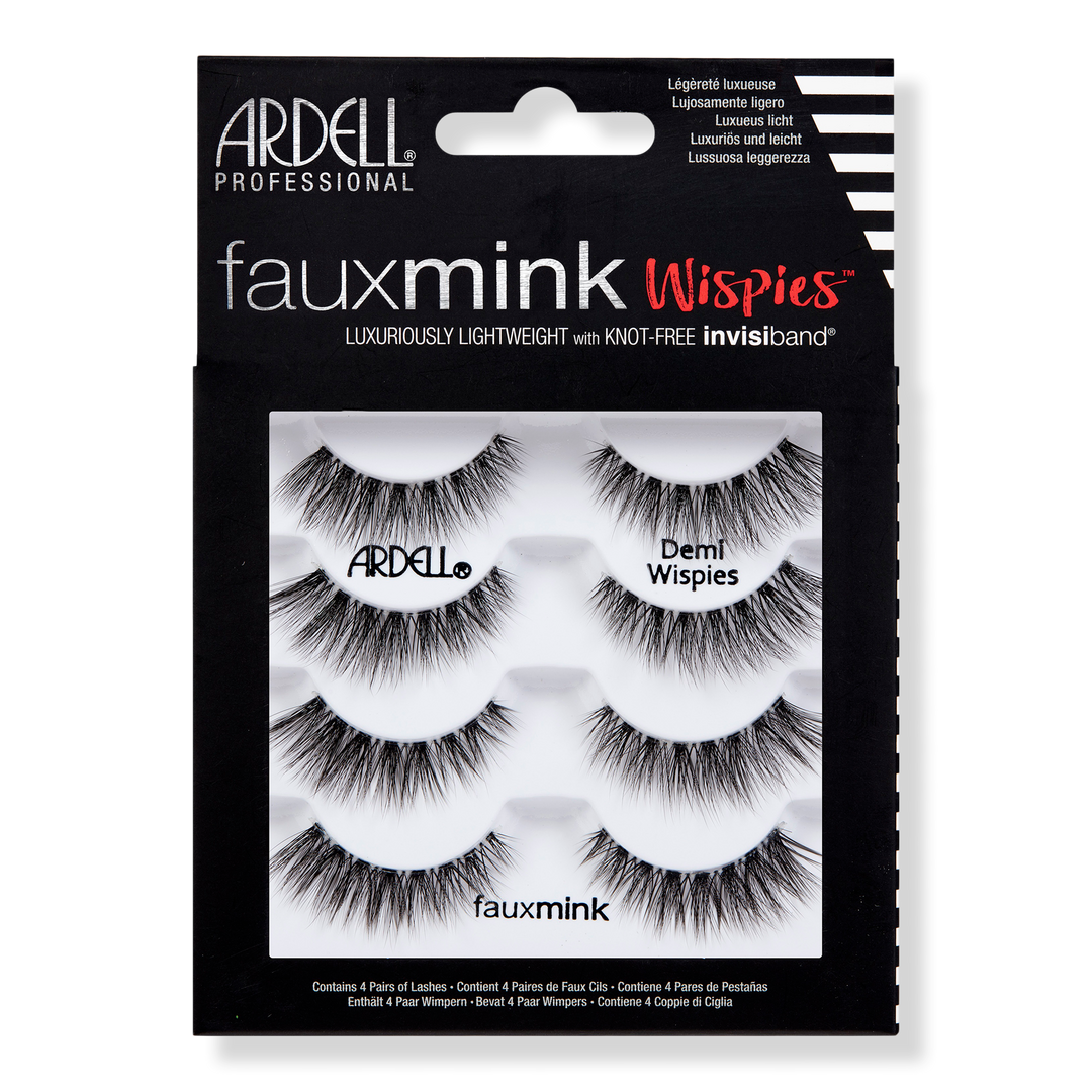Enchant and captivate with Ardell Faux Mink Demi Wispies. A stunning and sultry vision with short inner corners that fan gracefully into the outer corners. Medium volume with just the right length. Soft luxurious fibers that crisscross for a gorgeous, full-bodied feathered effect.