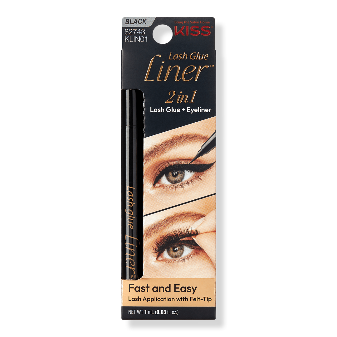 Kiss Lash GLUEliner glides on as a felt tip eyeliner & performs like lash glue. Position false lashes over liner & they stay put all day!