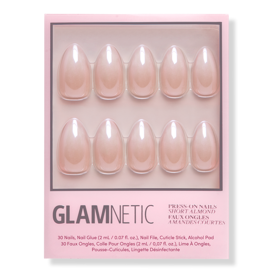 Remove any previously applied nail polish. Wash and dry hands. Gently push back cuticles using the cuticle stick and sanitize nails with alcohol pads. Size Glamnetic nails by placing on finger and select sizes best suited for your natural nails. Apply an even layer of glue to natural nails and the back of Glamnetic nails. Align Glamnetic nails with cuticle line and apply at a downward angle. Press down firmly and hold for 10-20 seconds. Apply all 10 nails and if needed, file or clip to achieve desired shape.