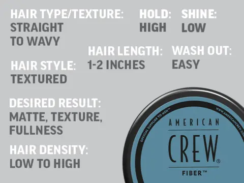 American Crew Fiber has unsurpassed hold, a humectant and emollient that provides a smooth feel. Protects against moisture loss while providing total control.