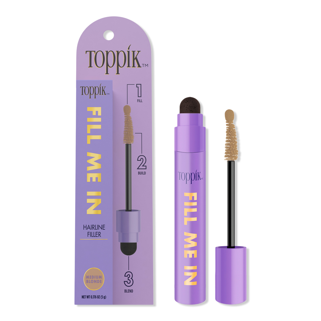 Toppik Fill Me In Hairline Filler is a long-lasting, durable formula designed to fill, build, and blend sparse areas with one mess-free, easy-to-use tool.