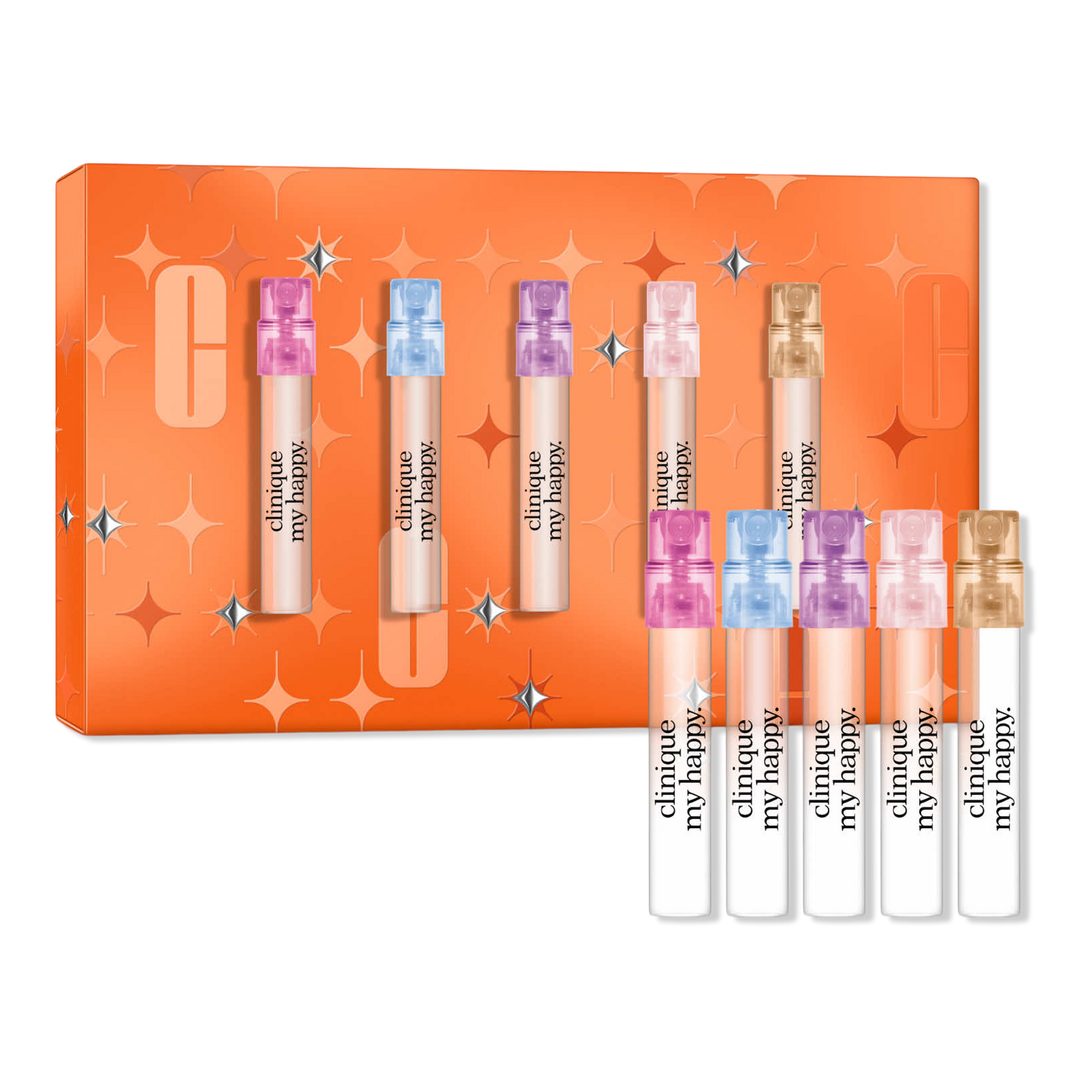 The Clinique Find Your Happy Mini Fragrance Set is a delightful set of five mini fragrances for happiness anytime.