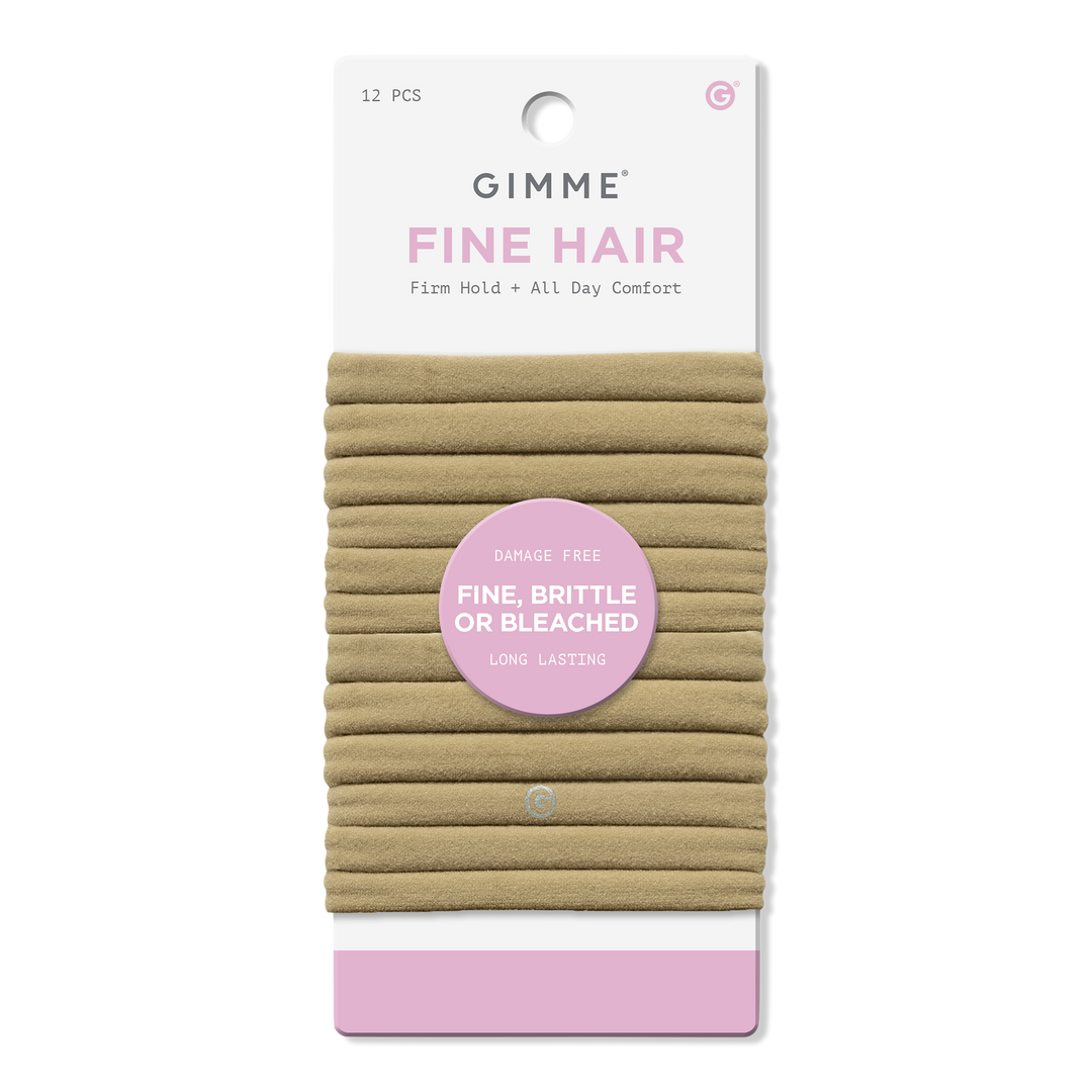 Discover Gimme Beauty hair bands, perfect for fine hair! Strong yet gentle grip, no snagging, breaking, dents, or creases. Effortless styling awaits!