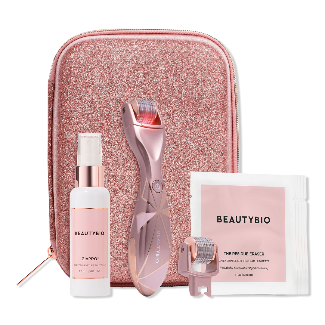 BeautyBio's Firm and Glow GloPRO Set features the award-winning GloPRO microneedling tool, Skin Prep Pads, FACE MicroTipâ„¢ Attachment, and Pack N' Glo case. Enhance the benefits of skincare products for visibly firmer, smoother skin while targeting fine lines, uneven texture, and enlarged pores.
