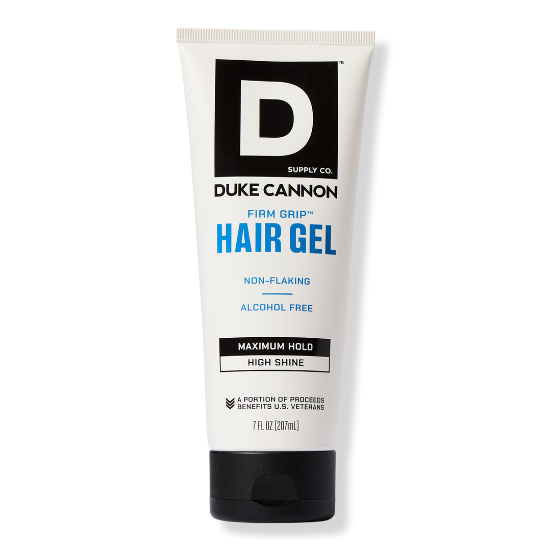 Duke Cannon's Firm Grip Hair Gel is built to deliver maximum hold and keep things firmly in place, all day – no exceptions. This superior-grade hair gel is alcohol-free and water-based for smooth application and easy styling, delivering a respectable, high-shine finish that never flakes.