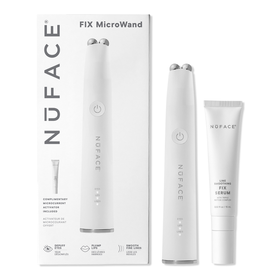 NuFACE FIX MicroWand is an FDA-cleared microcurrent wand to depuff undereyes, plump lips, and smooth fine lines in just 3 minutes for an instant refresh.