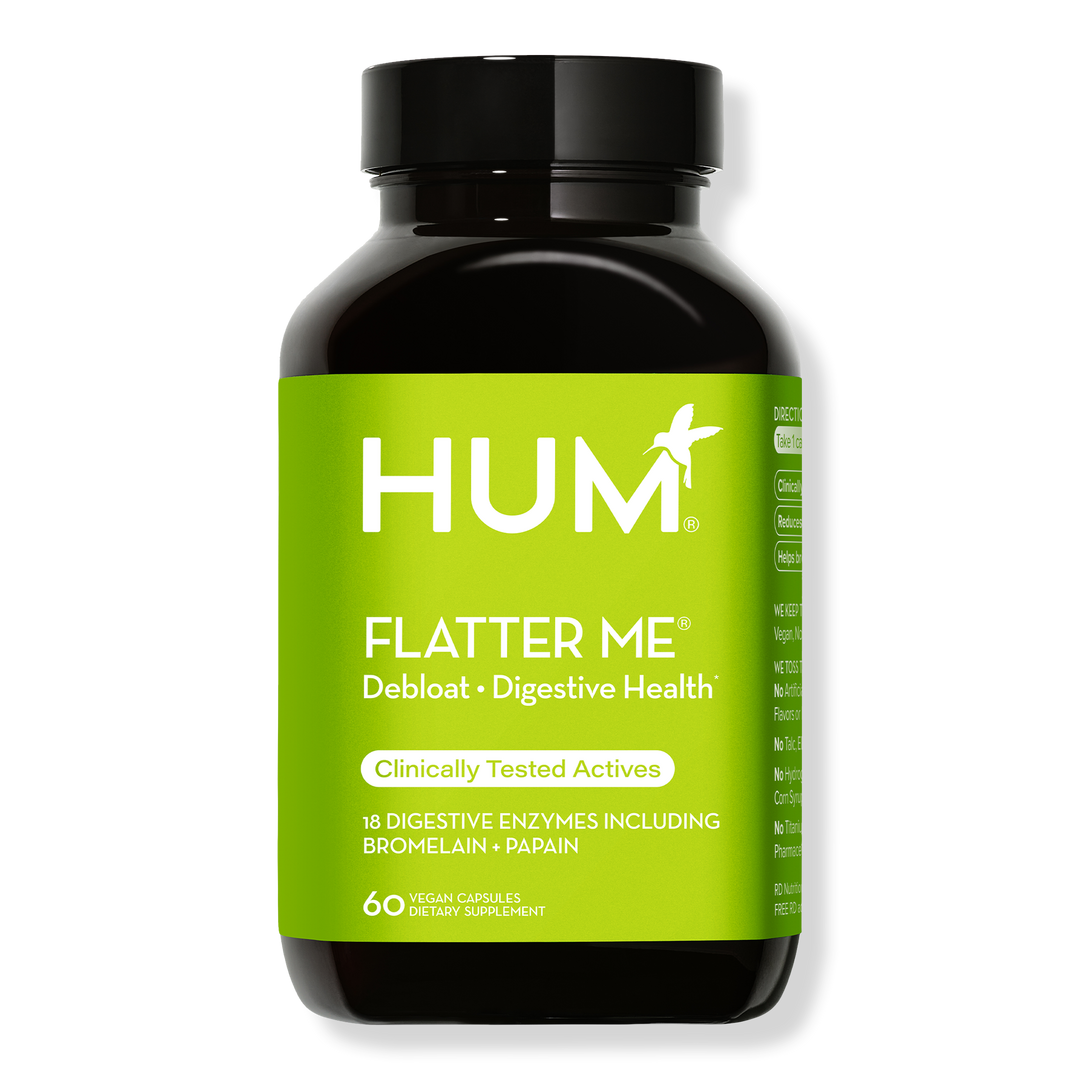 HUM Nutrition Flatter Me is a clinically proven, fasting-acting, digestive enzyme formula to debloat, break down all foods and aid in digestion.