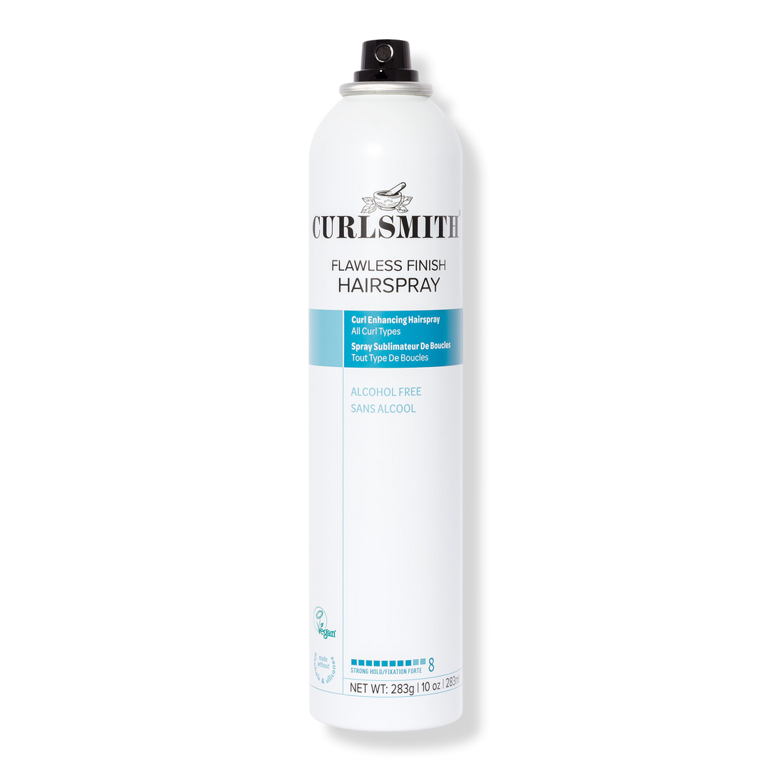 Curlsmith Flawless Finish Hairspray is the perfect strong hold hairspray without crunchiness for finishing styles, controlling frizz and locking your style in place.