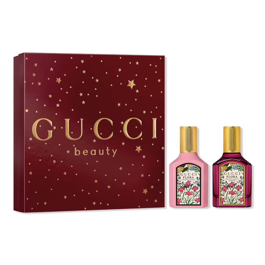 Sparkle under the stars, gift Gucci Beauty. Gucci Flora Gorgeous Gardenia: An intensely feminine, rich white floral scent. Gucci Flora Gorgeous Gardenia Intense: A Gucci scent that enhances the floral sensuality of the gardenia flower with rich, woody intensity.