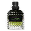 - Housed inside a tall white aluminum bottle topped with a shiny black nozzle, the front presents the name and key notes on a joyful pink background with a black border.