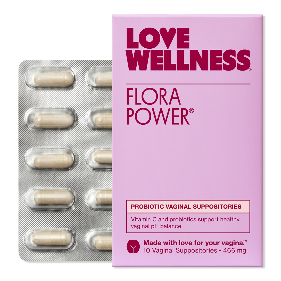 Love Wellness Flora Power is a probiotic + Vitamin C suppository for fresh vaginal odor and normal bacteria balance.