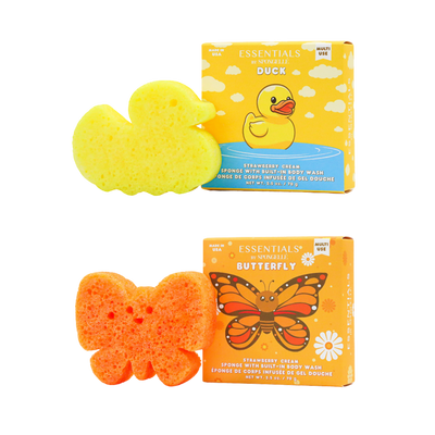 SPONGELLE Floral Boxed Flower 3-Piece Set Bath Sponge Built-In Body Wash Shower Loofah for Women