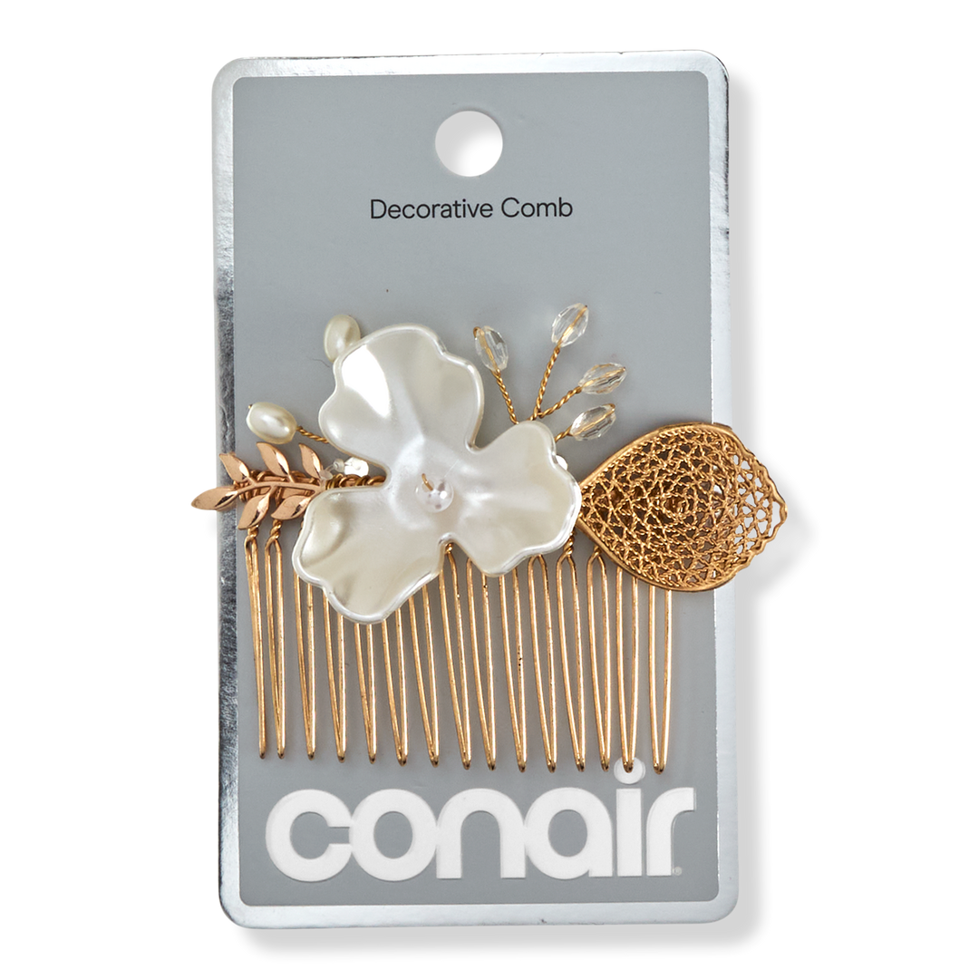 Elevate your look with this gold-tone floral hair comb from Conair! With faux pearls and glam vibes, it's perfect for adding formal flair to hair.