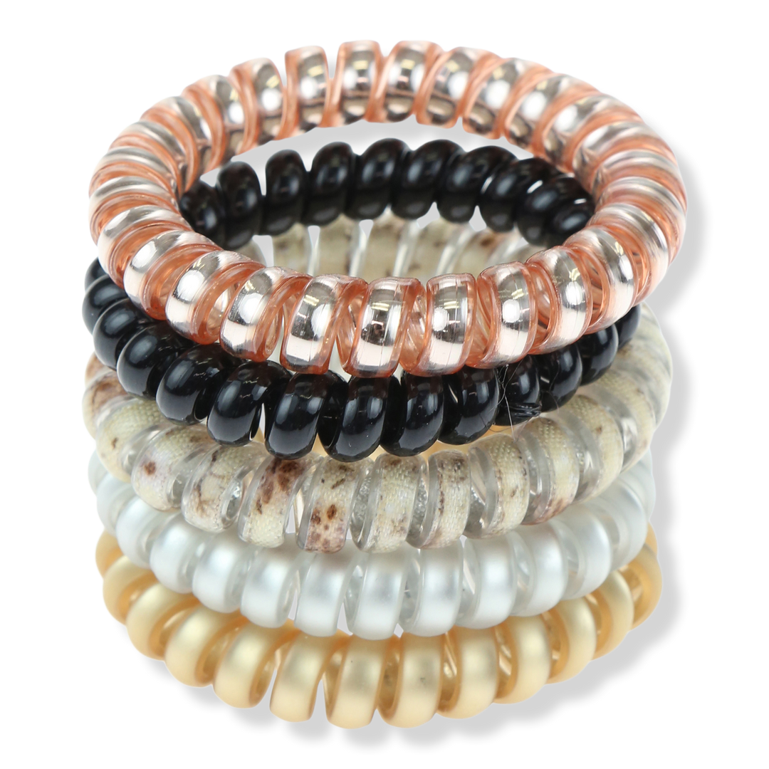 Embellish your looks with Capelli New York's exclusively-designed Floral Metallic Phone Cord Ponies. This 5 pack of chic ponytail holders will add a fun and playful touch to any look!