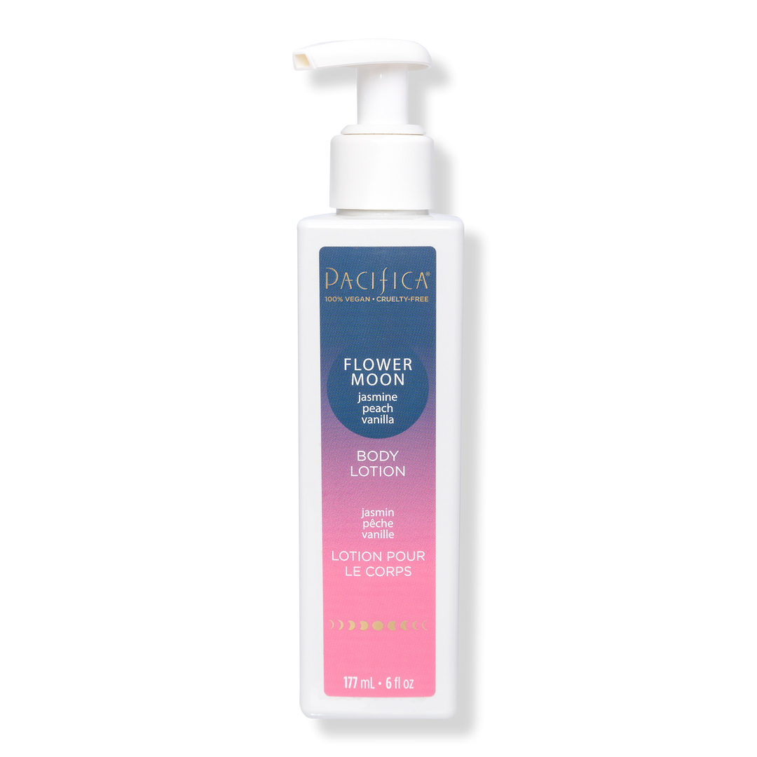 Pacifica's lightweight Flower Moon Body Lotion combines a euphoric blend of jasmine, peach and vanilla with nourishing natural oils to support your dreamiest skin.