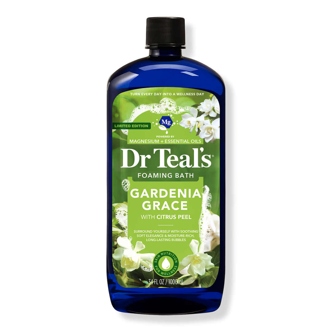- Dr Teal’s limited edition Gardenia Grace Foaming Bath blends soft gardenia florals with uplifting citrus to create a calming, elegant scent experience