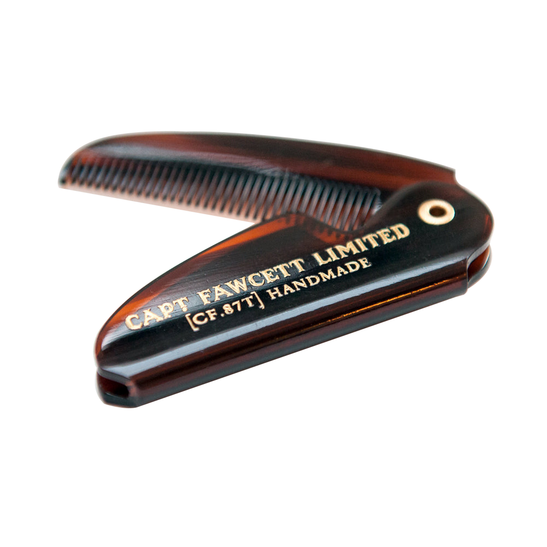 Captain Fawcett's beautifully crafted, fine toothed Folding Pocket mustache Comb (CF.87T) is just the ticket for the grooming, maintenance & styling of ones simply splendid upper lip sweater. Ideal when used in conjunction with the Captains very own world renowned patent pomades.