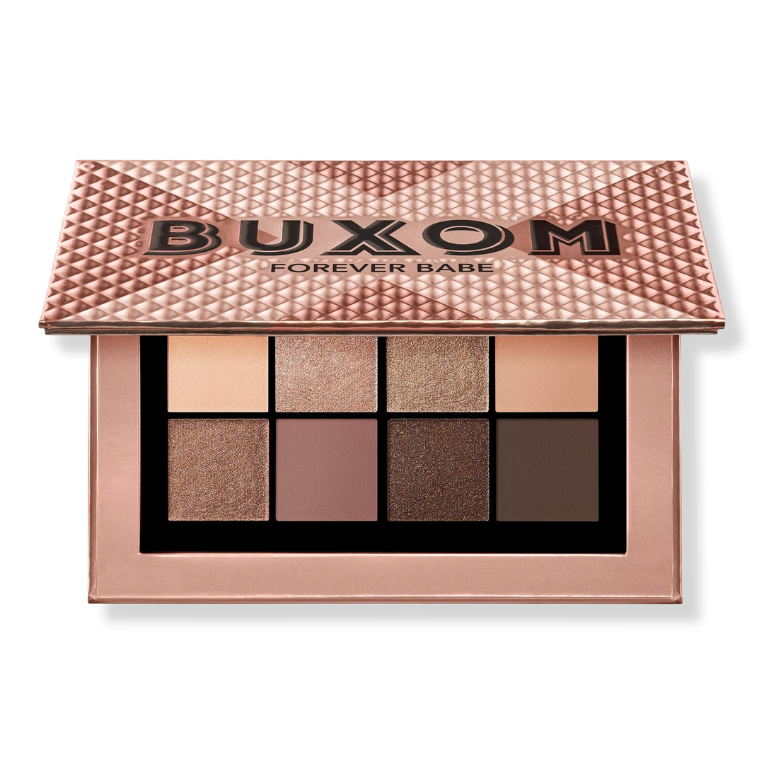 Buxom's Forever Babe Iconic Nudes Eyeshadow Palette is a curated palette of Buxom's top-selling eyeshadow shades in a talc-free, primer-infused formula.