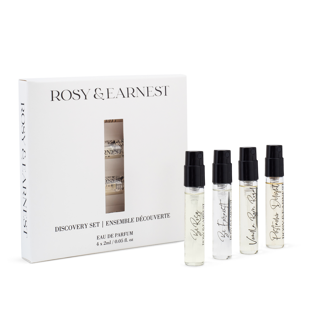 Discover four award-winning clean fragrances in one set. Rosy & Earnest’s EWG Verified™, vegan collection spans soft florals, warm gourmands, and fresh woody notes — all crafted with complete ingredient transparency.