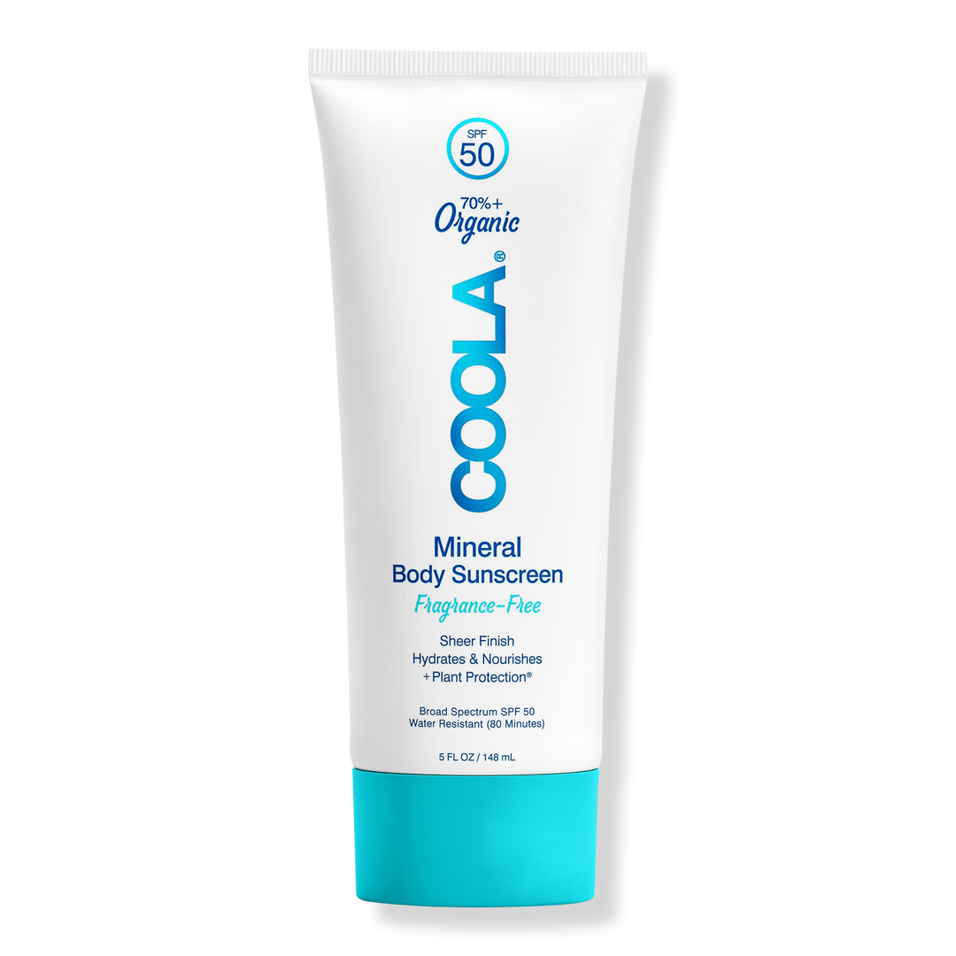 COOLA's Fragrance-Free Mineral Body Sunscreen Lotion SPF 50 provides hydrating, chemical-active free sun protection without the white cast.