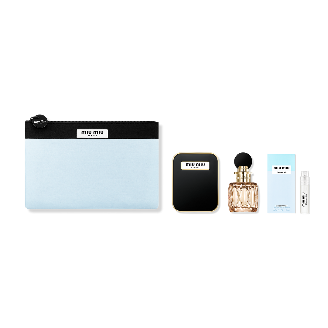 Free 4 Piece Gift with Miu Miu large spray purchase. One per customer. While quantities last