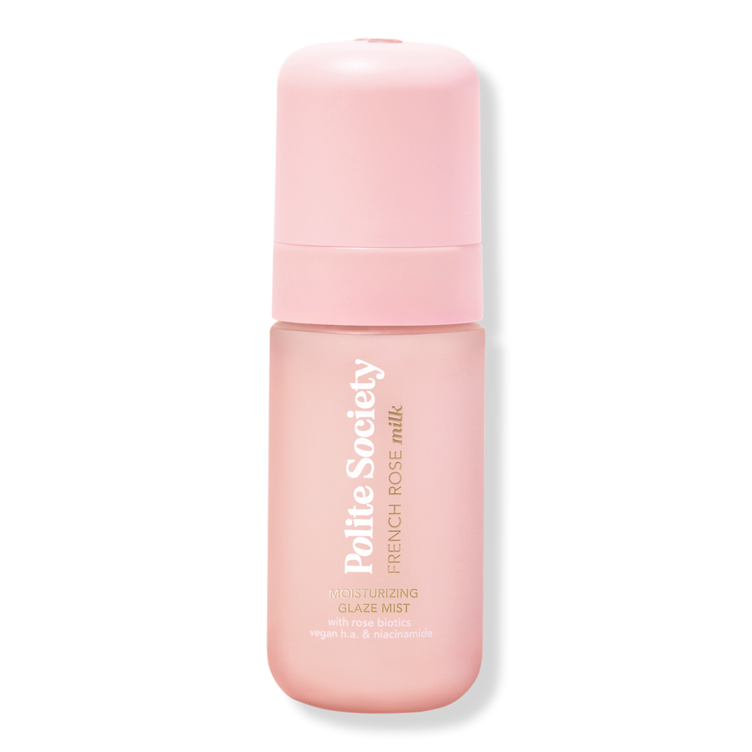 Polite Society's French Rose Milk Moisturizing Glaze Mist gives you the hydrated radiance of liquid glass for a buildable, glazed makeup effect with skincare benefits.