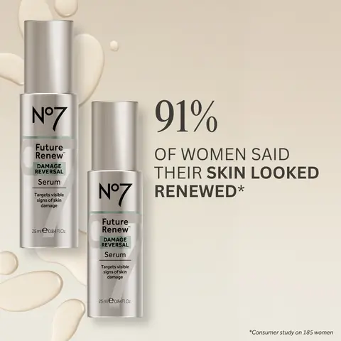 - 92% of women said their skin looked less damaged after using the No7 Future Renew facial serum**