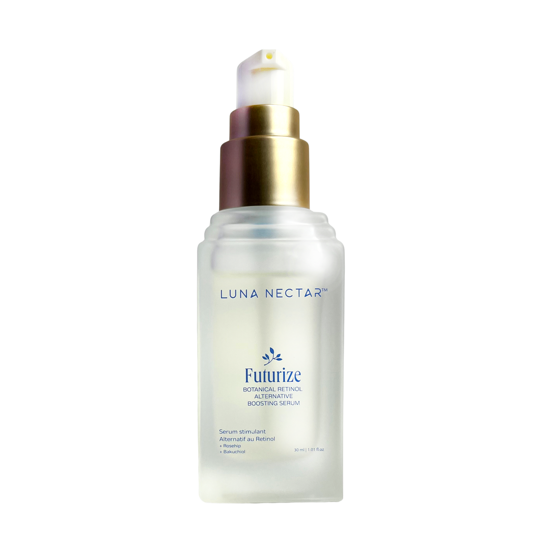 Futurize is a plant-based retinol serum with star ingredients Bakuchiol and Rosehip. A gentler, yet effective method of smoothing the appearance of fine lines and wrinkles and revealing renewed, radiant, softer skin. Contains naturally derived vitamin A. Designed for sensitive and mature skin.