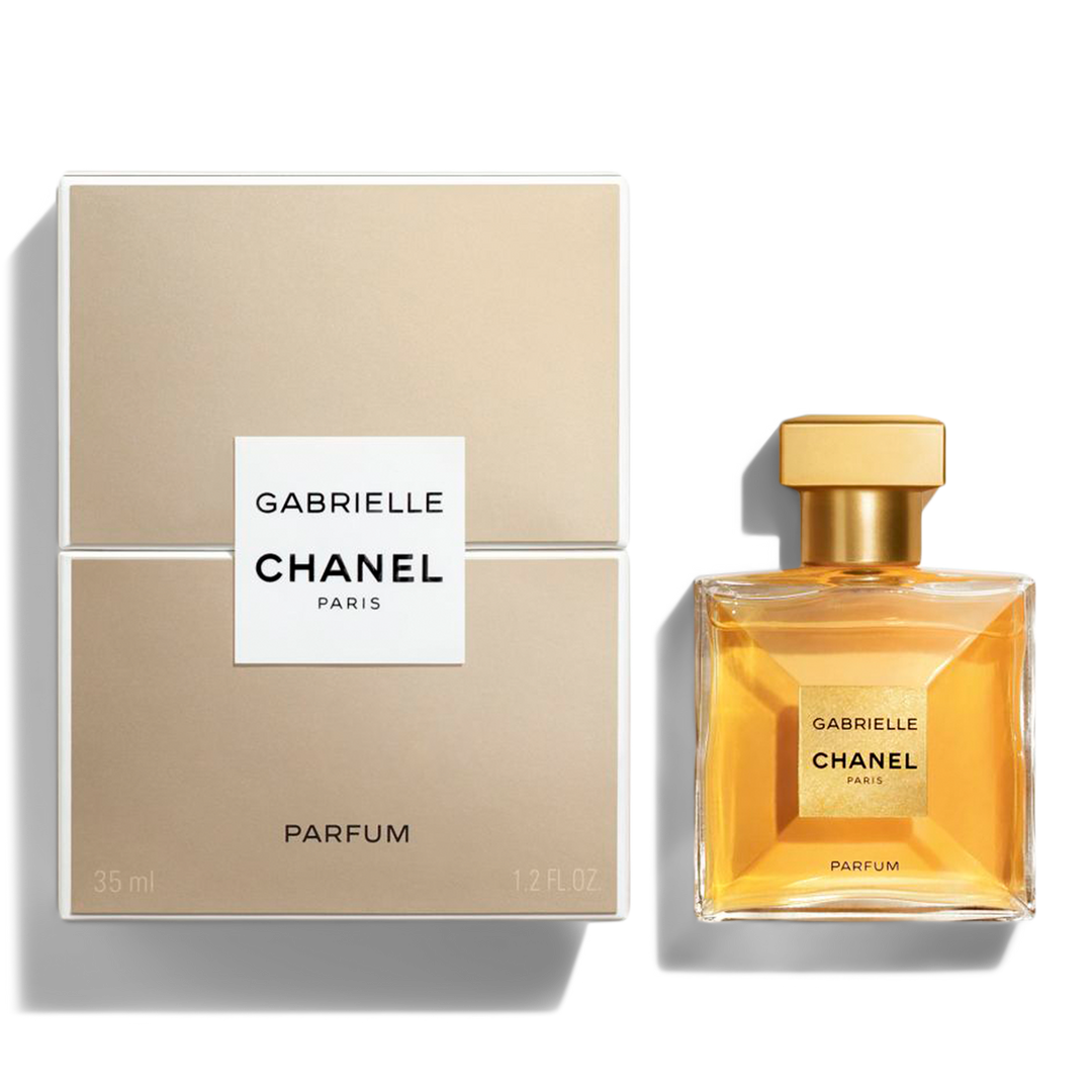 Online Only. GABRIELLE CHANEL Parfum Spray. The fragrance seems weightlessly suspended within the square bottle, which has been crafted from ultra-thin glass and is topped with a spray nozzle for precise application. The coffret, stopper and label feature a deep golden shade.