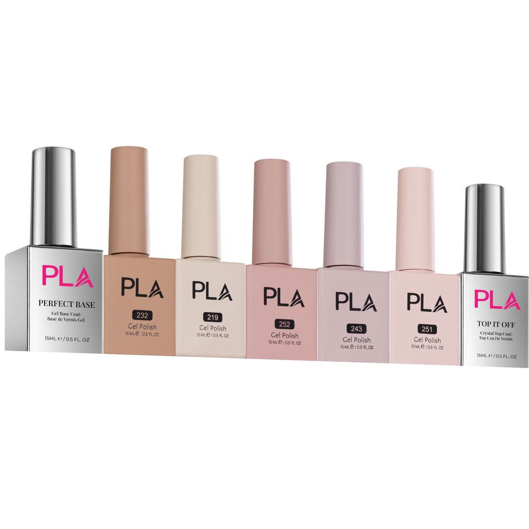 Achieve long-lasting gel manicures at home with the PLA Gel Polish Starter Kit. This set includes PLA Perfect Base, PLA Top It Off, and 5 gel polishes in a variety of shades. Designed for LED curing, it pairs perfectly with the PLA UV lamp for durable, high-shine results.