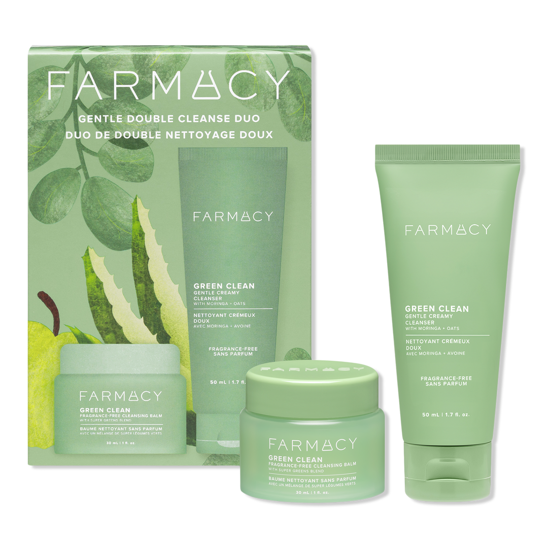 This Gentle Double Cleanse Duo is the ultimate duo for every skin type. Powered by Farmacy's best-selling Green Fragrance-Free Clean Cleansing Balm and their Green Clean Gentle Creamy Cleanser, this 2-step kit works to melt away makeup, spf, and excess oil while soothing to hydrate skin.