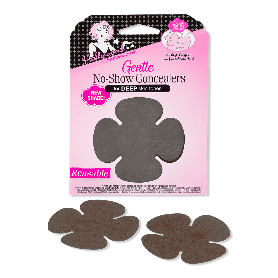 Hollywood Fashion Secrets Gentle No-Show Concealers are petal-shaped pasties that keep nipples under wraps without irritating delicate skin. A hypoallergenic, skin-facing adhesive provides secure yet gentle coverage, while a specially designed paper material ensures these concealers remain hidden.