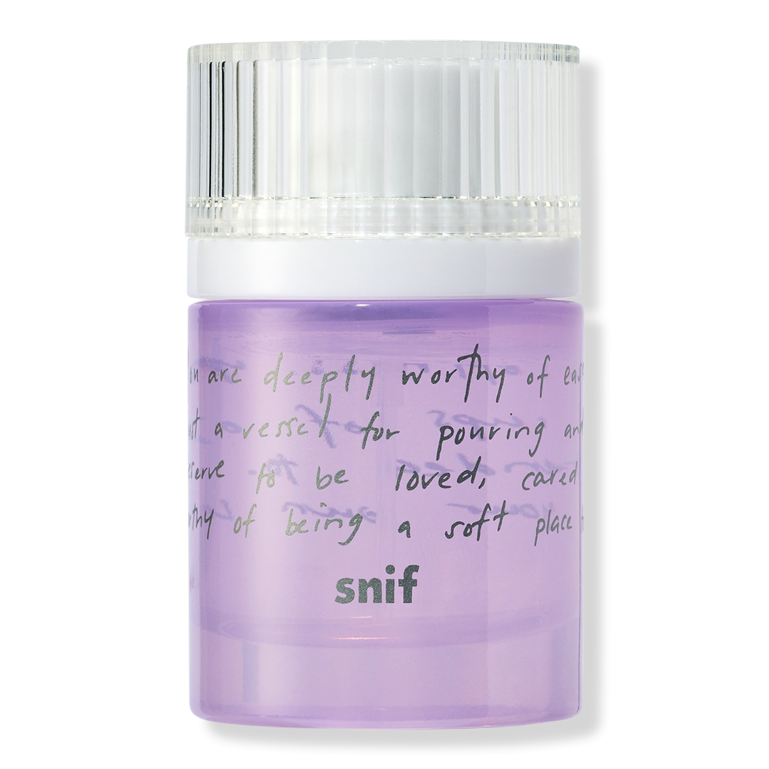 Snif Gentle Reminder Eau de Toilette is a soothing scent by Alex Elle that blends purple ube (an earthy-sweet yam native used in Filipino cooking), milk froth, black tea, palo santo, date sugar and lavender.
