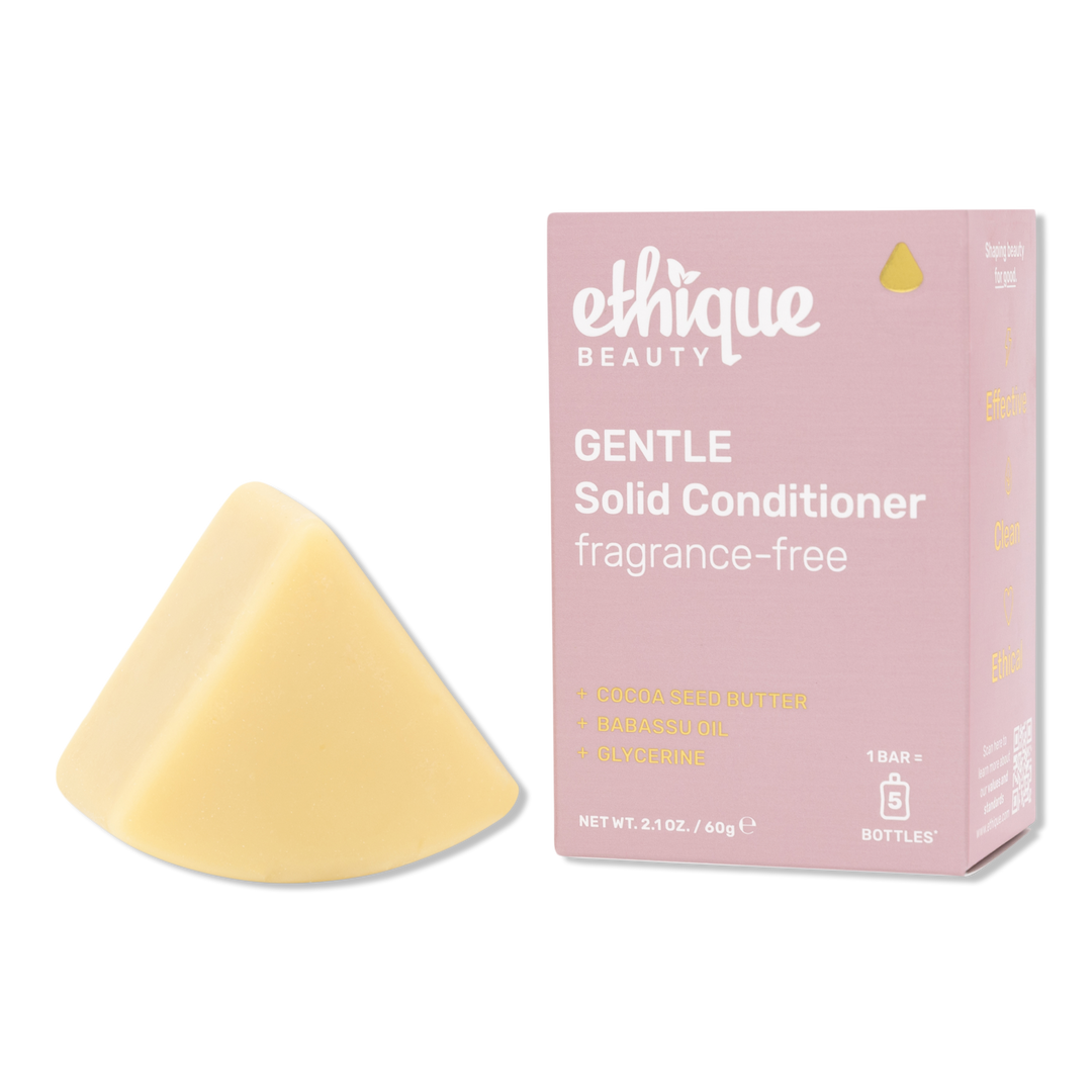 Ethique Beauty's Gentle Conditioner is a fragrance-free conditioner that's mild on sensitive hair and scalps, but big on moisture and softness with babassu oil and glycerine. No fragrances or essential oils.