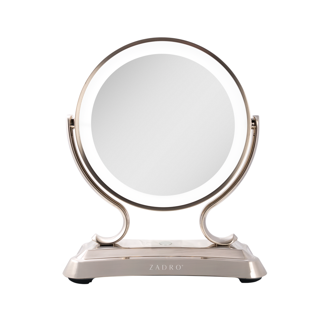 12.75-inch wide by 6.25-inch deep by 16-inch tall. Dual 5-times and 1-times magnification face mirror. 360-degree endless rotating mirror head. 3 color lighting: cool white, daylight, and warm white. Smart dimmer touch control pad.