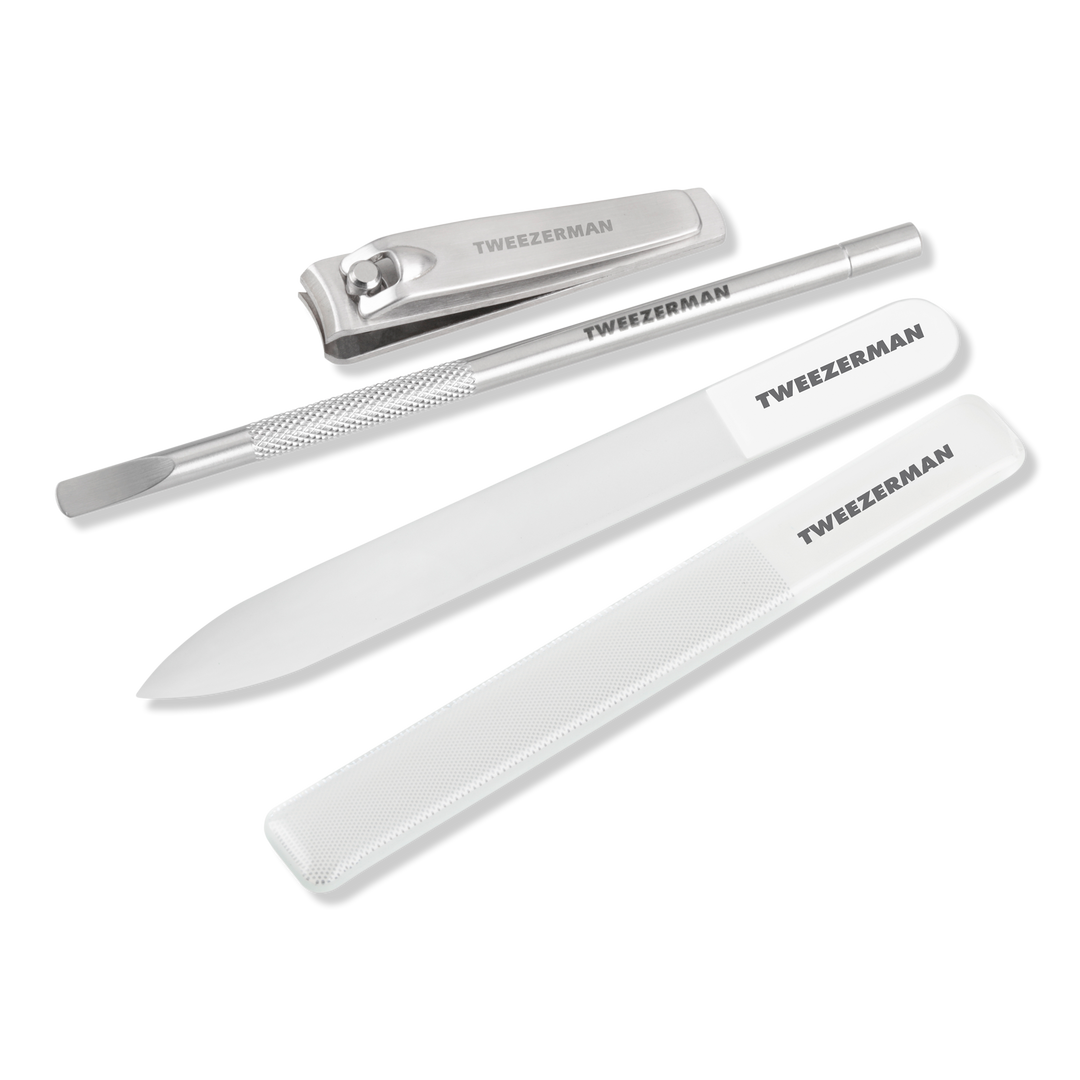 Tweezerman's Glass Manicure Set is designed to gently trim, shape, buff and shine nails. Best in class tools that are easy to sanitize & perfect to achieve a polish-free natural nail look.