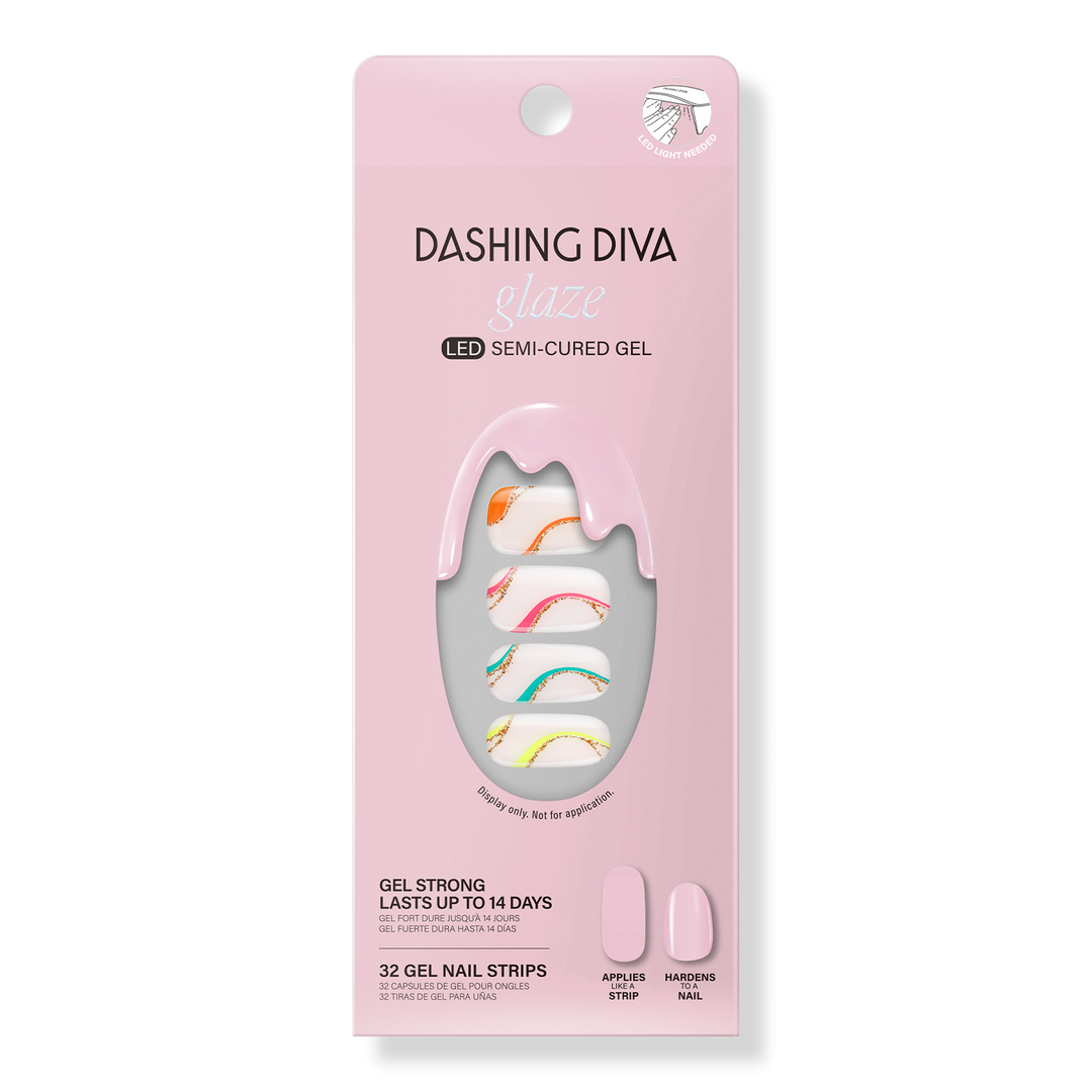 Dashing Diva GLAZE DESIGN Ready-to-wear nail art straight from the salon. Semi-cured gel nail strips with builder gel–like strength for up to 14 days of wear. Cures with an LED lamp in 60 seconds for a long-lasting, high-shine finish.