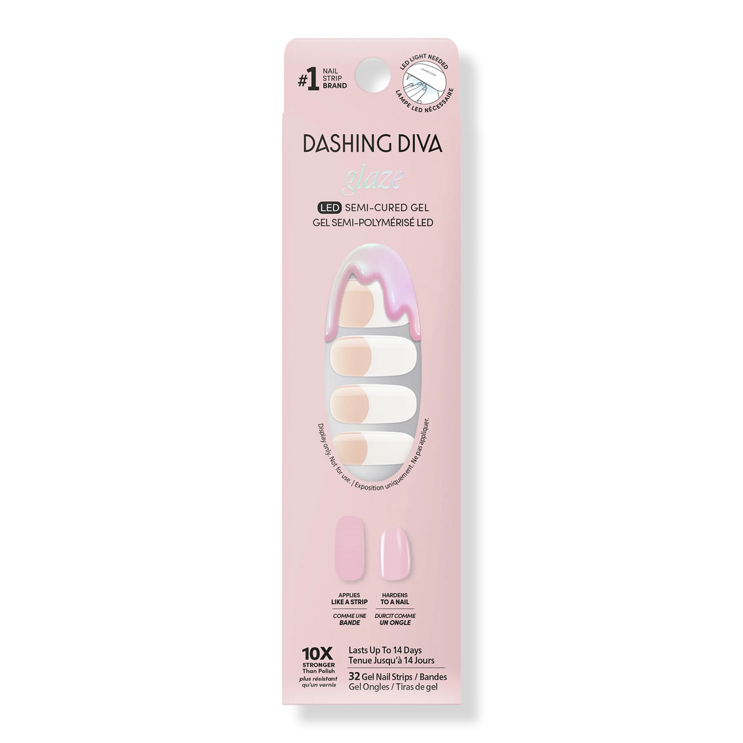 Dashing Diva GLAZE DESIGN Ready-to-wear nail art straight from the salon. Semi-cured gel nail strips with builder gel–like strength for up to 14 days of wear. Cures with an LED lamp in 60 seconds for a long-lasting, high-shine finish.