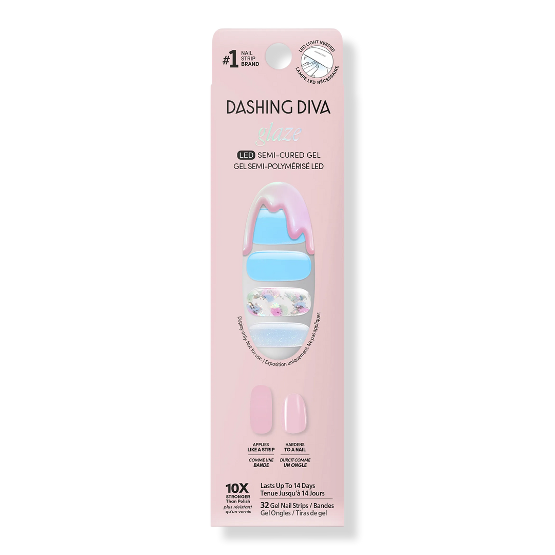 Dashing Diva GLAZE DESIGN Ready-to-wear nail art straight from the salon. Semi-cured gel nail strips with builder gel–like strength for up to 14 days of wear. Cures with an LED lamp in 60 seconds for a long-lasting, high-shine finish.