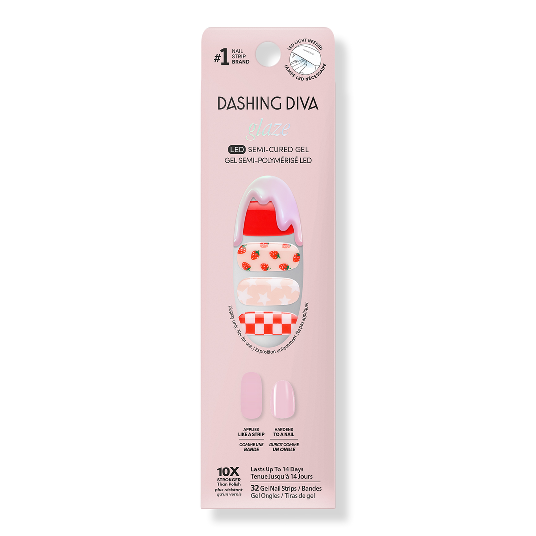 Dashing Diva GLAZE DESIGN Semi-cured Gel Nail Strips deliver salon-sculpted results with a mirror shine that lasts up to 14 days. Designed with a base coat, color coat, and topcoat, GLAZE cures under the light of an LED lamp in just 60 seconds, creating a pro-finish, real salon manicure at home!