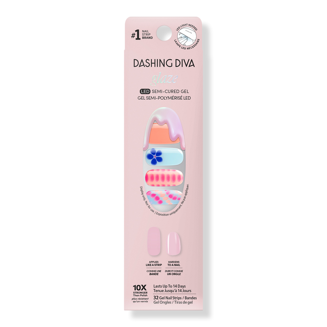 Dashing Diva GLAZE DESIGN Semi-cured Gel Nail Strips deliver salon-sculpted results with a mirror shine that lasts up to 14 days. Designed with a base coat, color coat, and topcoat, GLAZE cures under the light of an LED lamp in just 60 seconds, creating a pro-finish, real salon manicure at home!